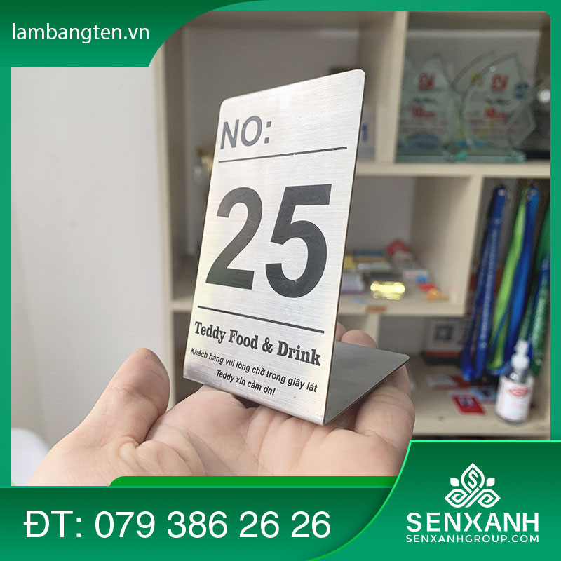 Thẻ số bàn là một dạng thẻ ghi những con số đánh dấu thứ tự của bàn đặt trong quán ăn, quán cà phê, nhà hàng,…được làm từ các chất liệu mica, inox, gỗ. Đây là một sản phẩm rất thịnh hành hiện nay được hầu hết các chủ quán ăn, quán cà phê, quán trà sữa đều đầu tư cho quán.